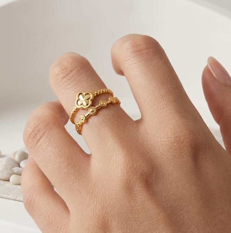 Anti-Tarnish Gold Plated Floral Adjustable Ring Set for Women